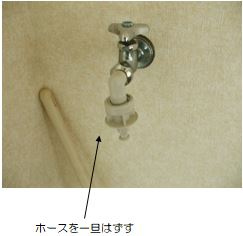 ★洗濯機の蛇口は、水抜きしたらその後に、洗濯機の給水ホースをはずして水が抜けていくのを確認しましょう。