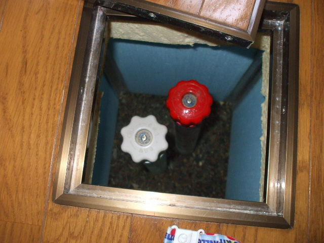 元栓を締めると、水道配管の途中で管をさえぎり供給をストップさせます。・・・・・この画で分るように供給をストップしてもそれだけでは、立ち上がりの配管内、蛇口の中には水が残っていますのでコレを出さなければ凍ってしまいます。